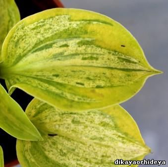 Размер S В переводе название означает - Серебряные Нити и Золотые Иглы Средняя хоста Высота 20-25 см. Размер листа: 9x7 см. Нестабильная химера. Листья полосатые. Зеленые изменяющиеся на желтые листья с уникальными зелено-белым центром. 5-6 пар жилок на листе. Цветы лавандовые. Полутень - тень. Очень эффектный сорт. Быстро нарастает и образует красивый высокодекоративный куст. | |